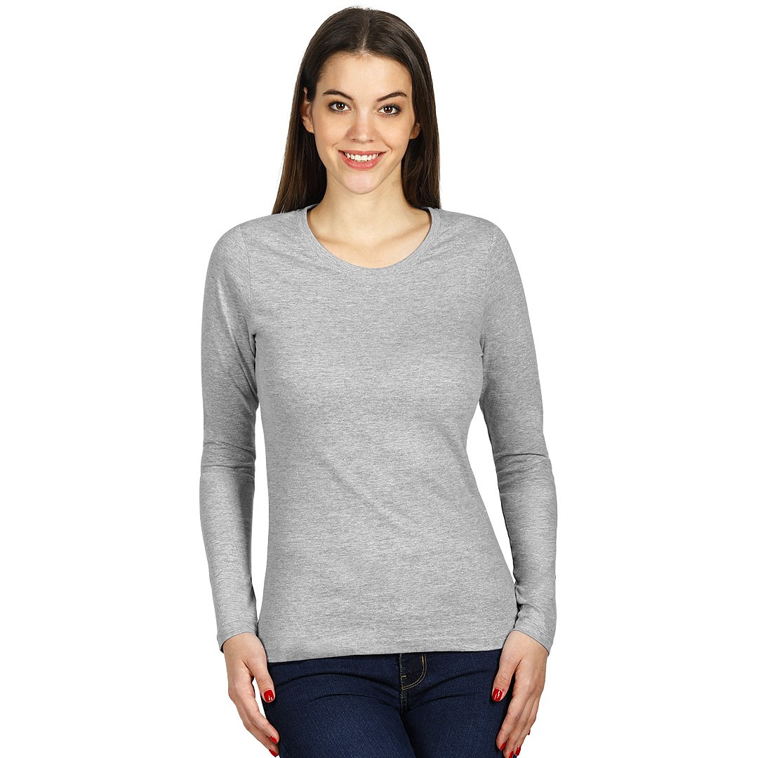 Ženska majica dugih rukava • Sirovinski sastav: 100% pamuk • Gramatura: 160 g/m² • Blago strukirani kroj • Šivena sa strane • Dupli štepovi • Dodatni štep duž ramena • Ojačan okovratnik sa trakom • Pogodna za brendiranje • Dostupna u muškoj verziji