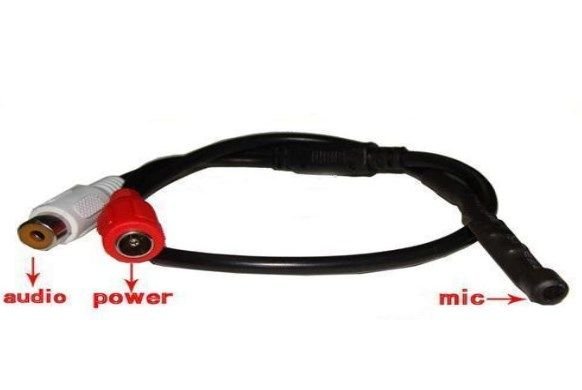 Mikrofon za upotrebu u sistemima video nadzora. Minijaturna varijanta sa konektorima za napajanje i konektorom RCA. Povezivanje sa sistemima za snimanje DVR je jednostavno i lako. Odlican kvalitet i osetljivost mikrofona koji pokriva od 5 do 80m2.